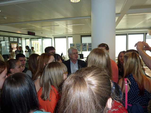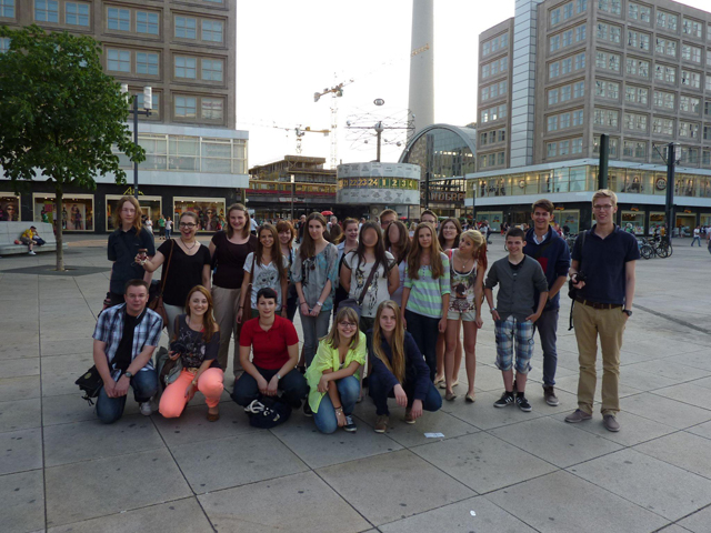 Nach der Besichtigung des sich im 19. Stock des Gebäudes befindlichen Journalistenclubs erwartete uns eine außerordentliche und für die meisten wohl einmalige Attraktion in ihrem Leben: Wir durften an der Redaktionskonferenz der BILD-Zeitung teilnehmen. Live mitzuerleben, wie eine der bekanntesten Zeitungen Deutschlands für ihr Erscheinen am Folgetag vorbereitet wird, ist schon ein besonderes Erlebnis gewesen. Letztendlich sollte dieses Event noch gekrönt werden, als eine spontane Fotoaktion mit dem Showmaster und Wetten-dass-Erfinder Frank Elstner – welcher wohl weniger wegen uns vor Ort war – stattfand. Am 10.07. machten sich dann 24 überwältigte, aber völlig geschaffte Schülerzeitungsredakteure und Lehrer auf den Heimweg. Geblieben sind jede Menge großartiger Eindrücke von einer großartigen Stadt, die mehr zu bieten hat als den Fernsehturm und die berühmte Curry-Wurst.