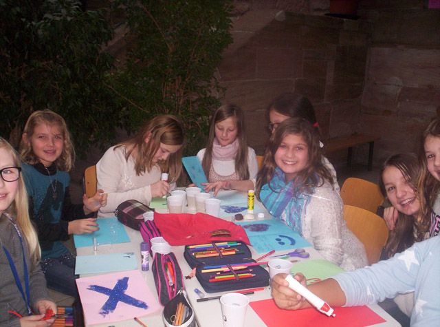 Am Donnerstag, den 18. Dezember 2014 fand nachmittags in unserer Aula eine große Weihnachtsfeier für alle Schüler der fünften Jahrgangsstufe statt. Organisiert wurde die Feier durch die Schülerpaten, die die Kinder mit alkoholfreiem Punsch und Lebkuchen versorgten. Außerdem war für viel Bastelmaterial gesorgt, sodass sich die Kids beim Herstellen von Weihnachtskarten kreativ so richtig austoben konnten.