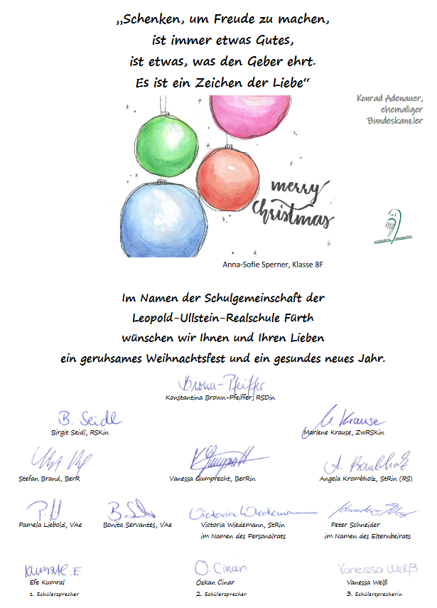 Die Leopold-Ullstein-Realschule bekam vom bayerischen Kultusministerium für ihre besonderen außerunterrichtlichen Aktivitäten eine Auszeichnung sowie einen Geldpreis.