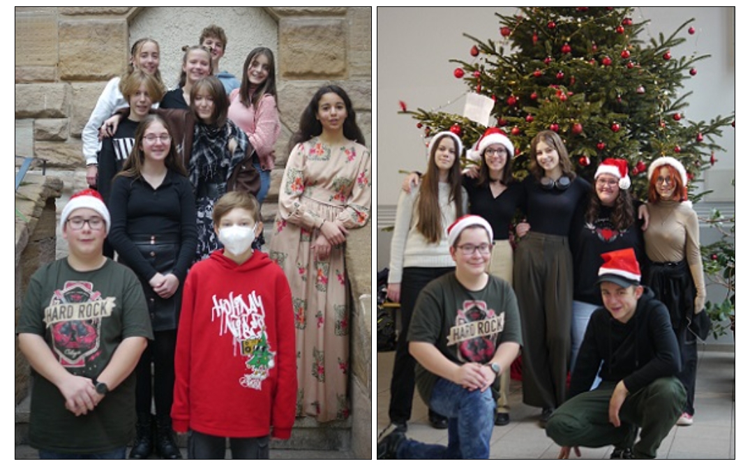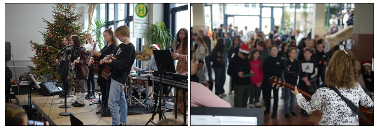 Neben kurzen besinnlichen Texten der Religionsfachschaft rundete das gemeinsame Singen aller Schülerinnen und Schüler in der Aula die morgendliche Veranstaltung ab: We Wish you a Merry Christmas und Stern über Betlehem ließen uns alle in weihnachtliche Stimmung kommen.