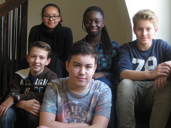 Vier der fünf Musiker fingen als 5klässler in der Band-Klasse an. Nach zwei Jahren wäre für sie Schluss gewesen, aber diese vier (the fab four?) wollten weitermachen und konnten ein Jahr lang mit der damaligen Referendarin Frau (an dieser Stelle nochmals ein herzliches Dankeschön) proben und sind nun DIE Schulband.